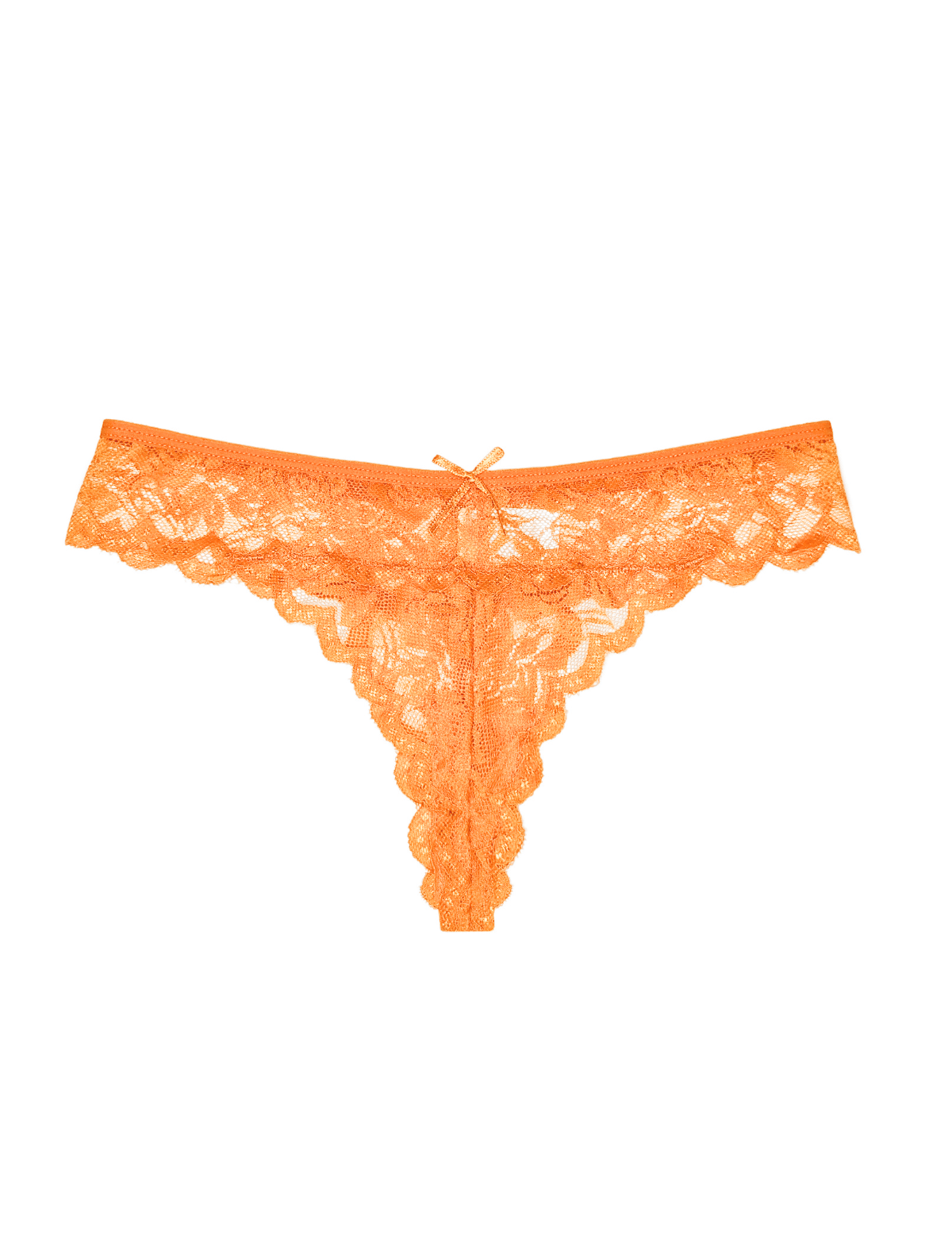 Bold lace encapsulated the classic thong silhouette - with scallop details throughout.