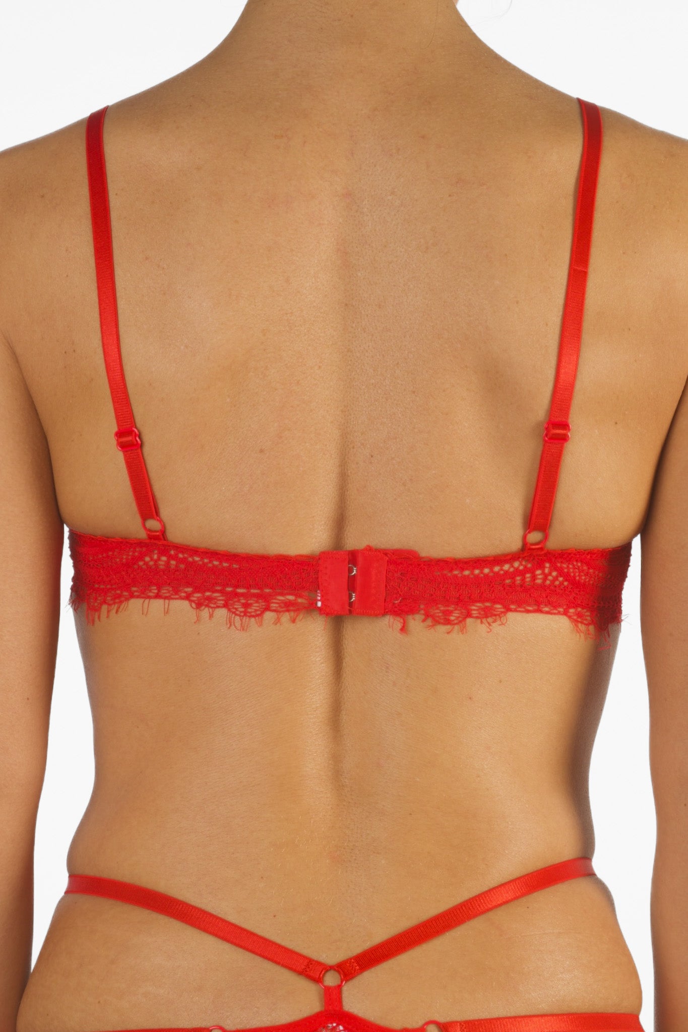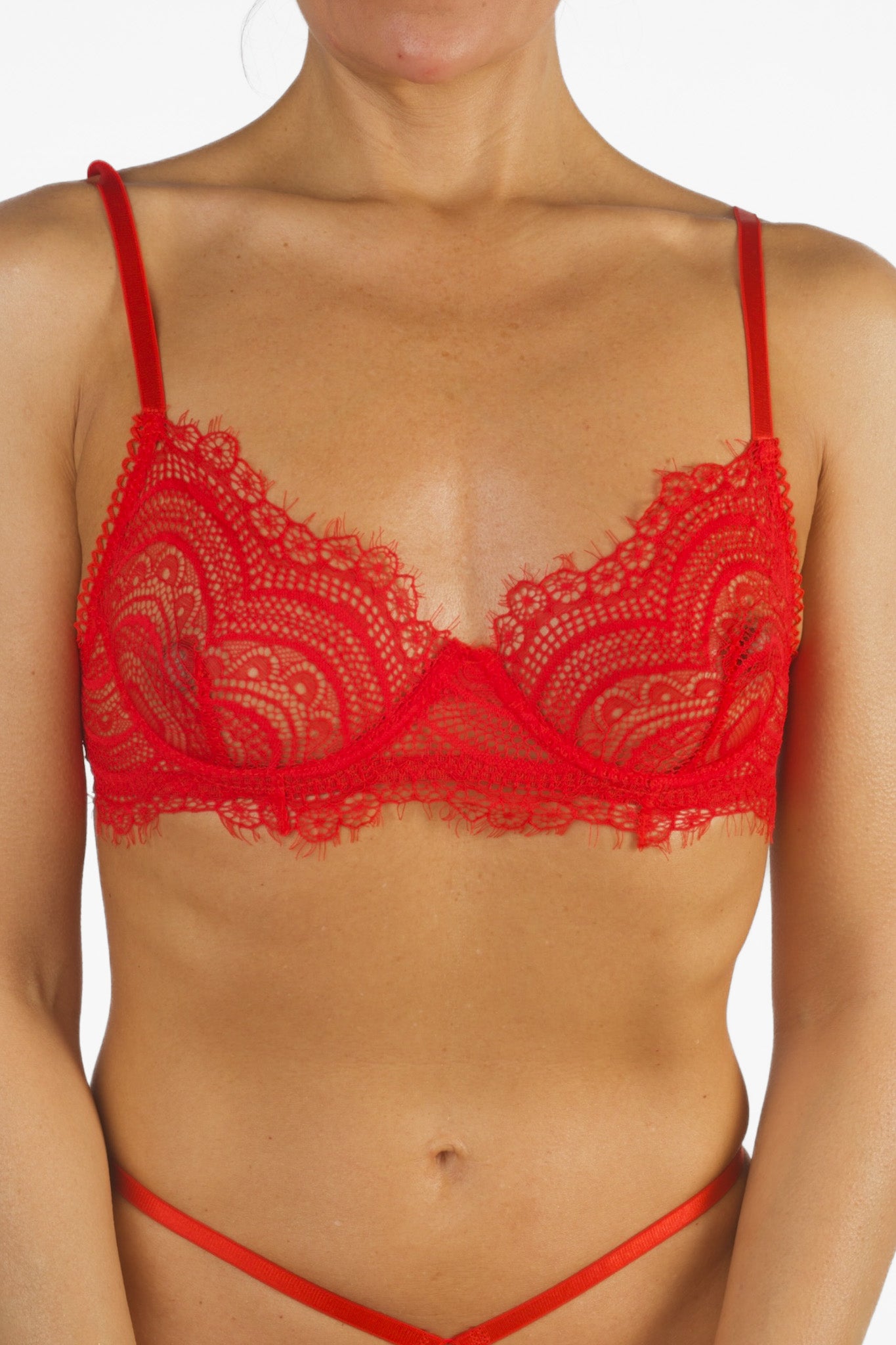 - Underwire lace bralette with eyelash-lace detailing + adjustable straps