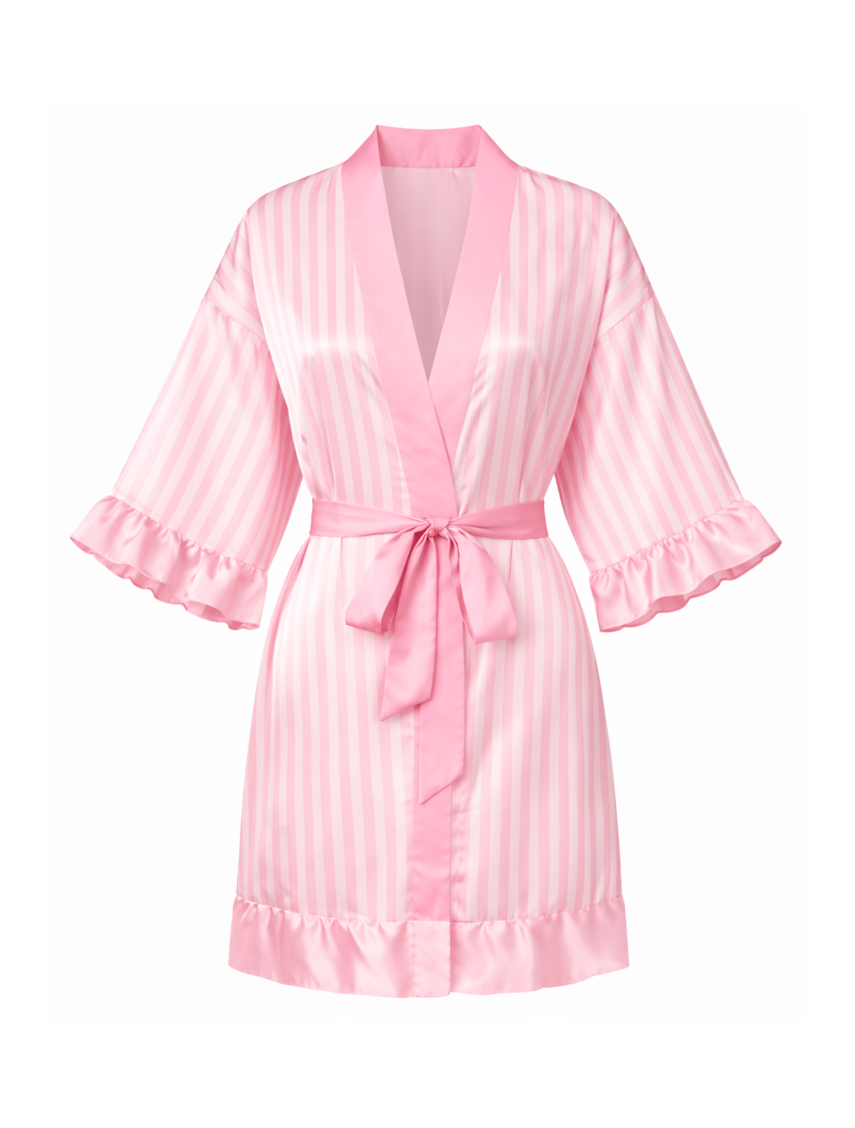Luxuriate is a smooth satin feminine robe with flounce sleeves. Perfect for lounging around in your knickers!