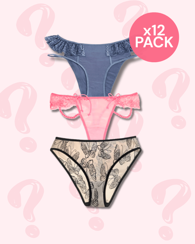 Each pack is a surprise assortment, so styles may vary from the images shown. Mystery bundles include a mix of silhouettes, with no guaranteed ratio between thongs and non-thongs. That’s part of the magic ✨